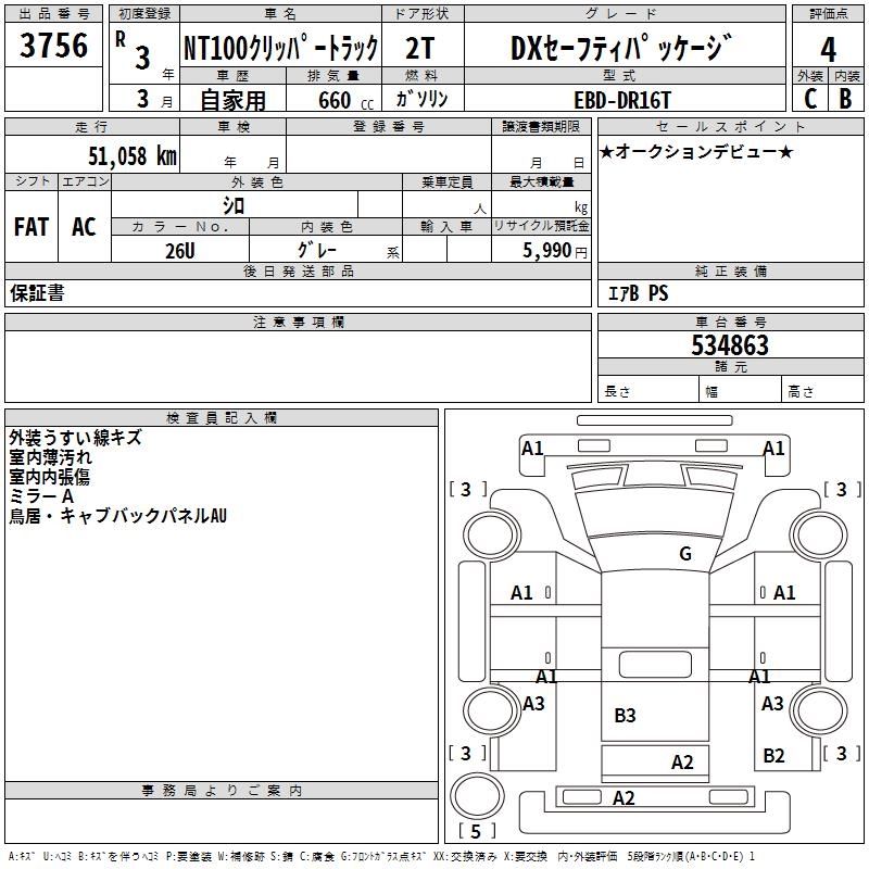 NISSAN NT100 CLIPPER DX SAFETY PACKAGE - лот 3756