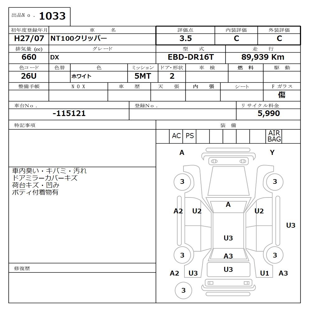 NISSAN NT100 CLIPPER DX - лот 1033