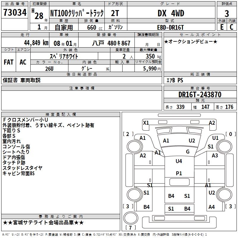 NISSAN NT100 CLIPPER DX 4WD - лот 73034