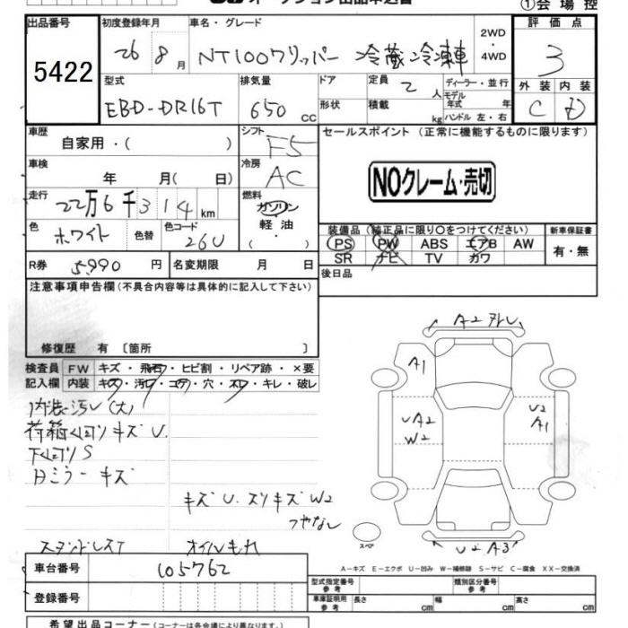 NISSAN NT100 CLIPPER CHILLING REFRIGERATOR - лот 5422