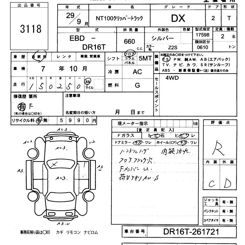 NISSAN NT100 CLIPPER DX 4WD - лот 3118