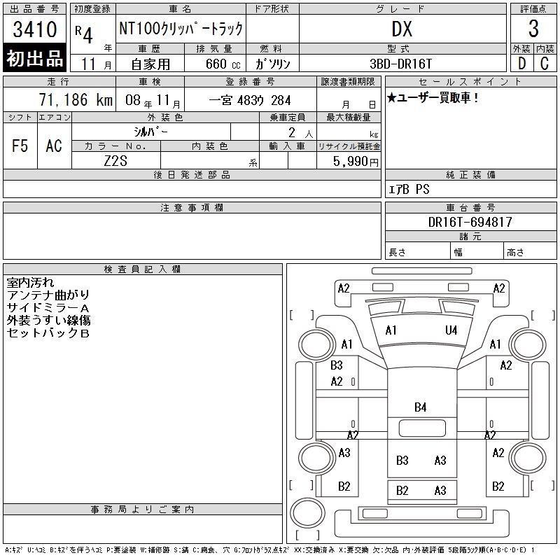 NISSAN NT100 CLIPPER DX - лот 3410