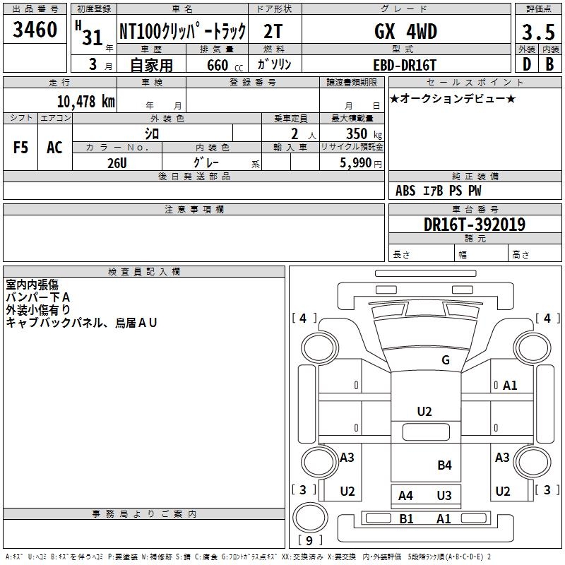 NISSAN NT100 CLIPPER GX 4WD - лот 3460