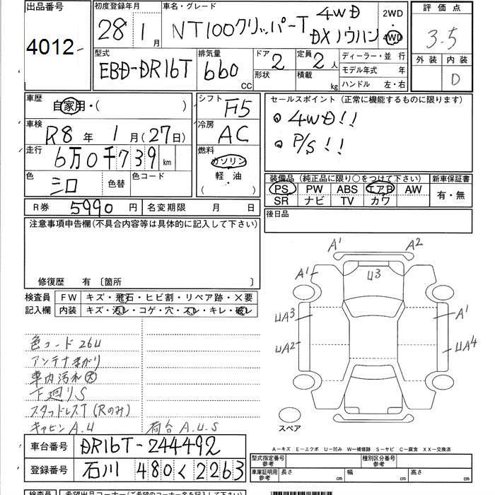 NISSAN NT100 CLIPPER 4WD DX NOUHAN USE - лот 4012