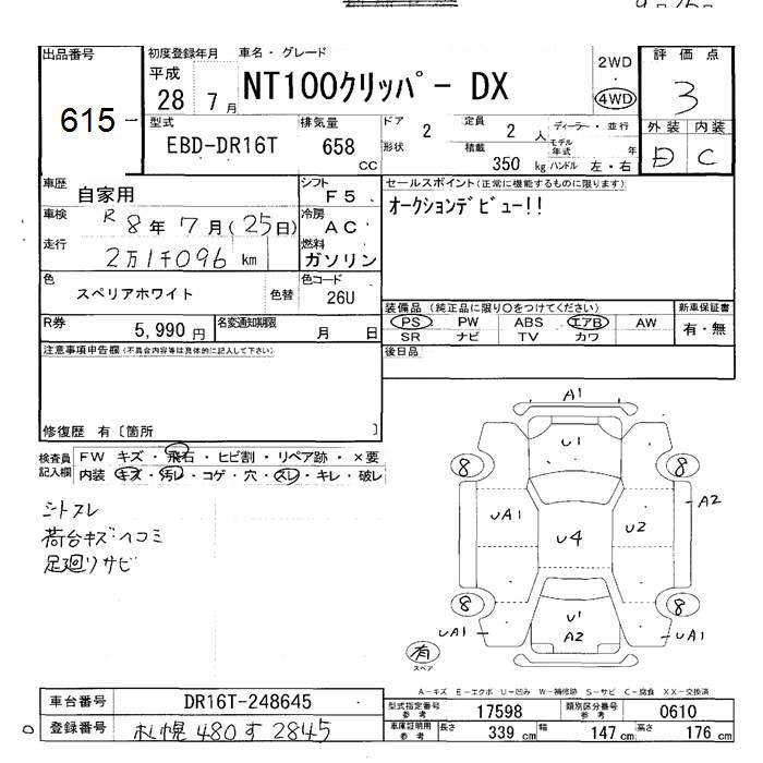 NISSAN NT100 CLIPPER 4WD DX - лот 615
