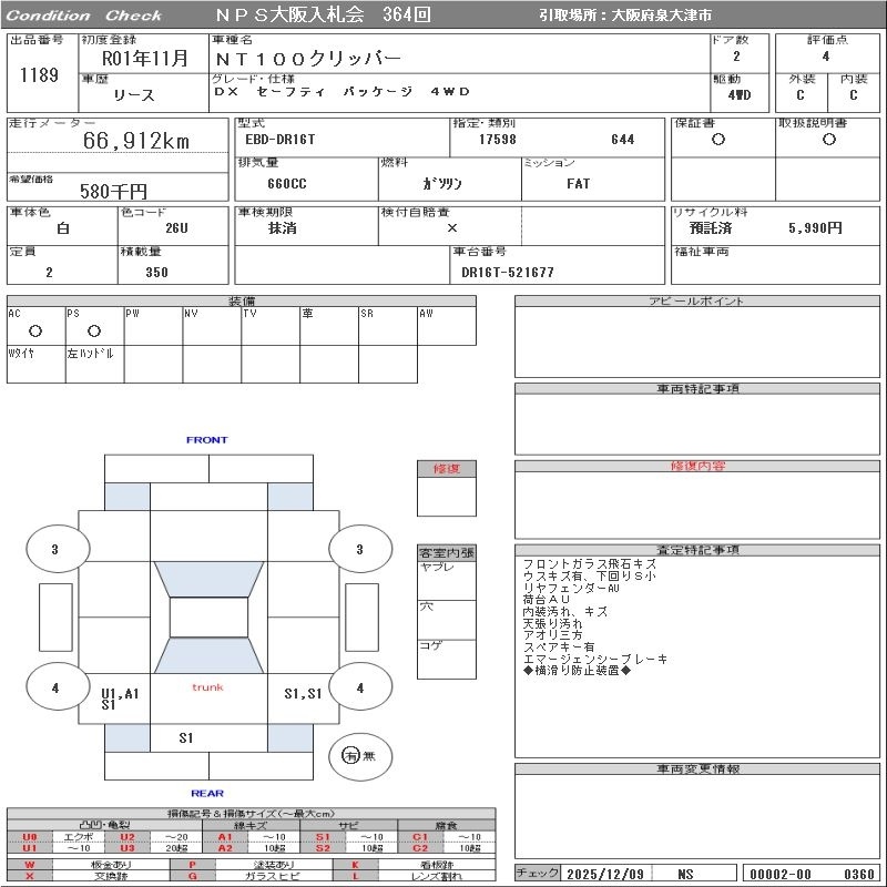 Все аукционы NISSAN NT100 CLIPPER
