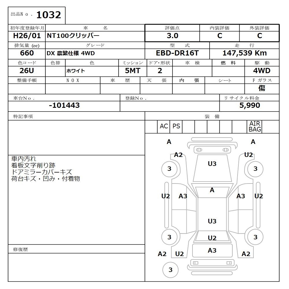 NISSAN NT100 CLIPPER - лот 1032