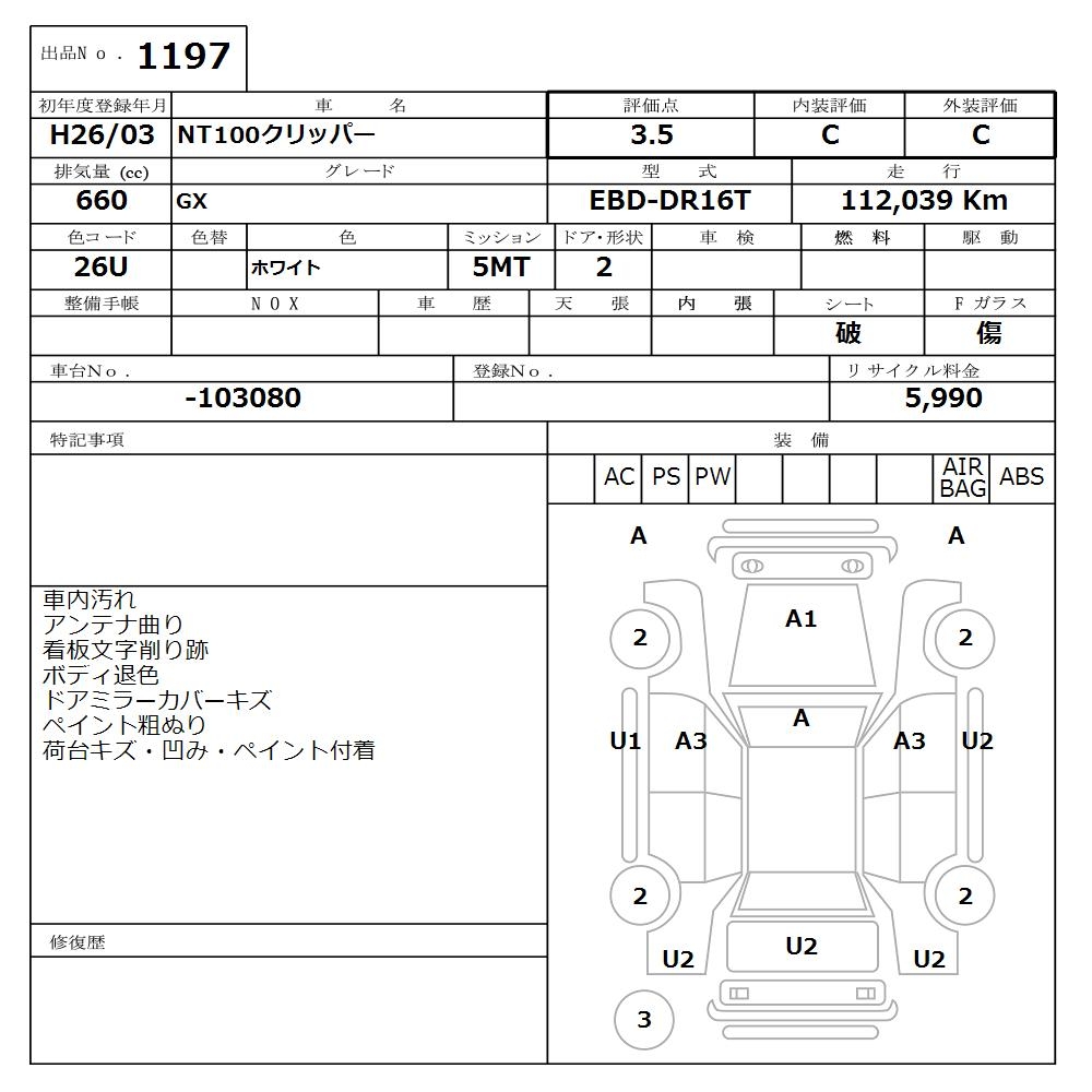 NISSAN NT100 CLIPPER - лот 1197
