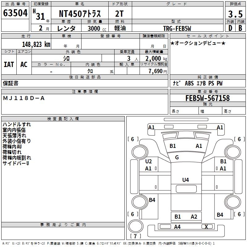 NISSAN NT450 ATLAS - лот 63504