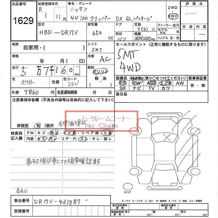 NISSAN NV100 CLIPPER - лот 1629