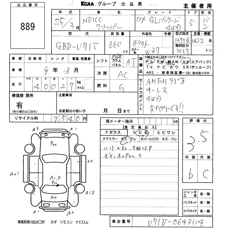 NISSAN NV100 CLIPPER - лот 889