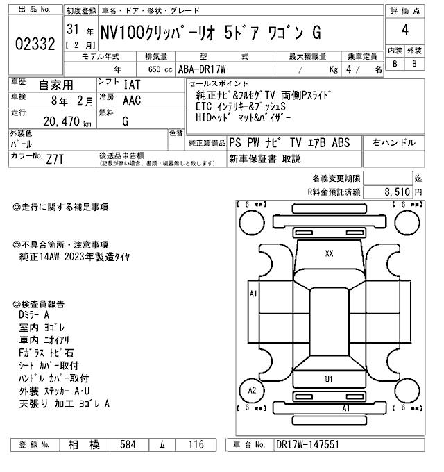 NISSAN NV100 CLIPPER RIO - лот 2332