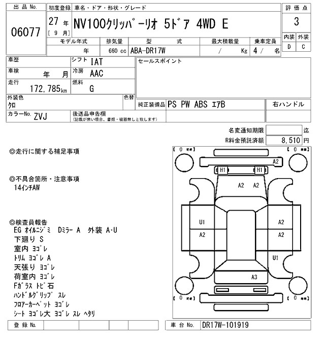 NISSAN NV100 CLIPPER RIO - лот 6077
