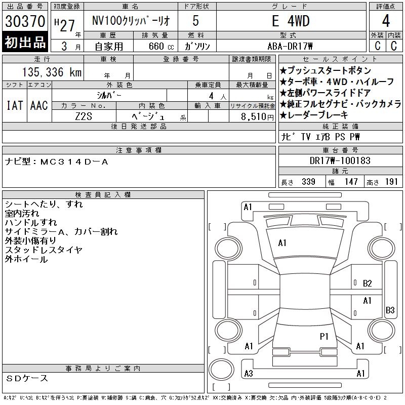 Все аукционы NISSAN NV100 CLIPPER RIO