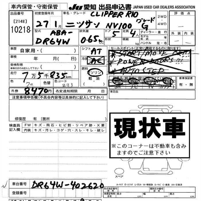 Все аукционы NISSAN NV100 CLIPPER RIO