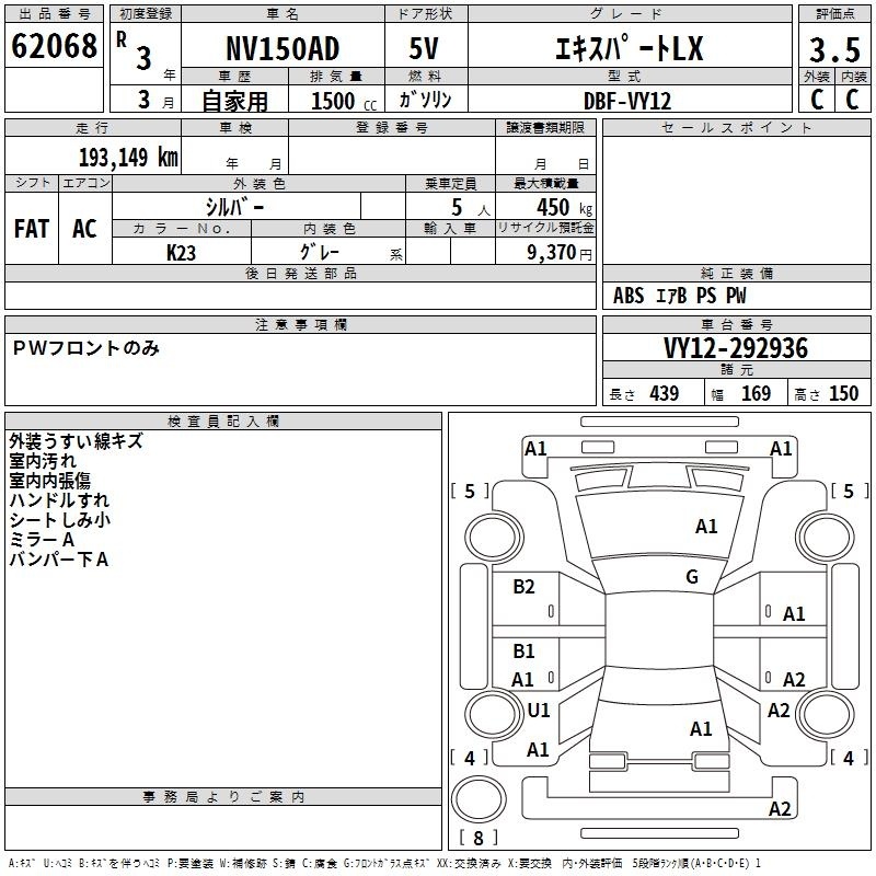 Все аукционы NISSAN NV150 AD