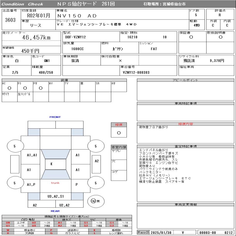 NISSAN NV150 AD VEEMA-JENSI- BRAKE STANDARD /4WD - лот 3603