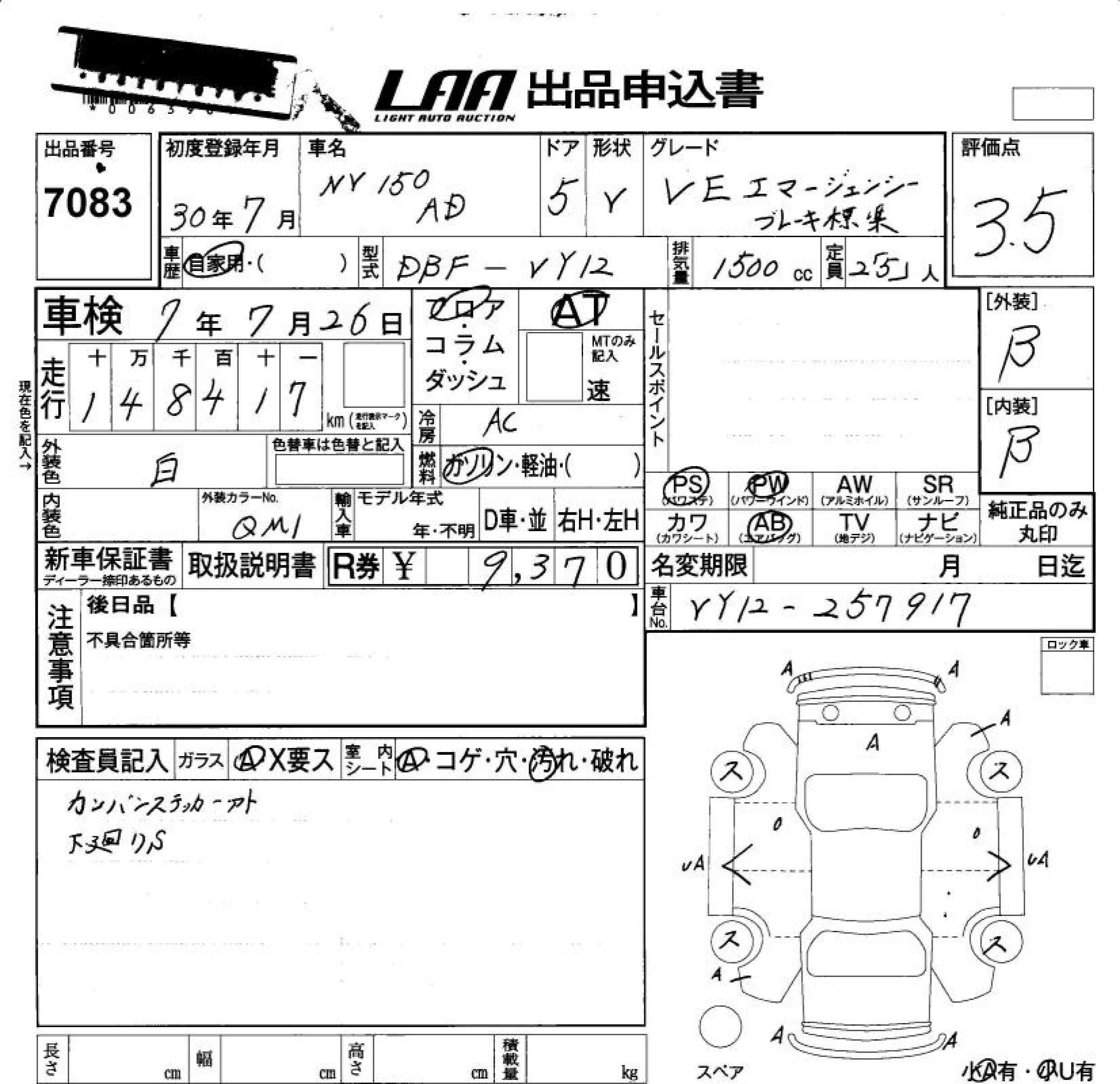 Все аукционы NISSAN NV150 AD