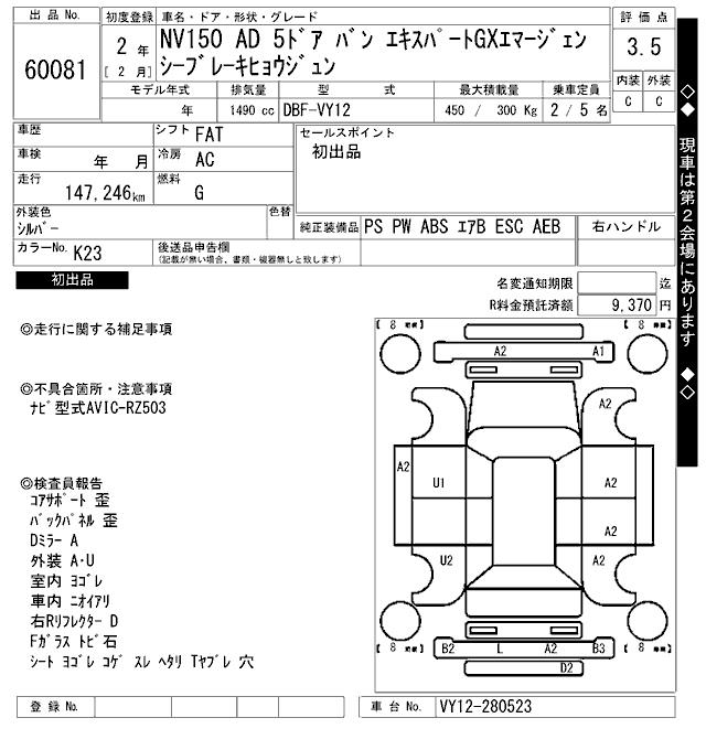 Все аукционы NISSAN NV150 AD