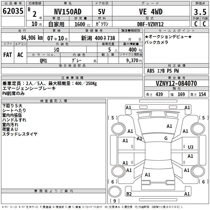 NISSAN NV150 AD VE 4WD - лот 62035
