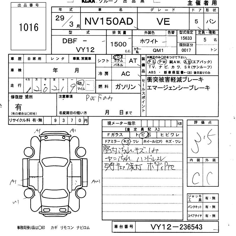 Все аукционы NISSAN NV150 AD