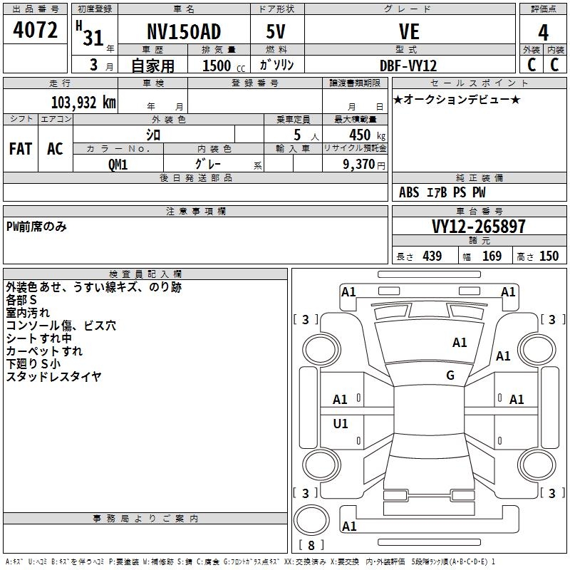 Все аукционы NISSAN NV150 AD