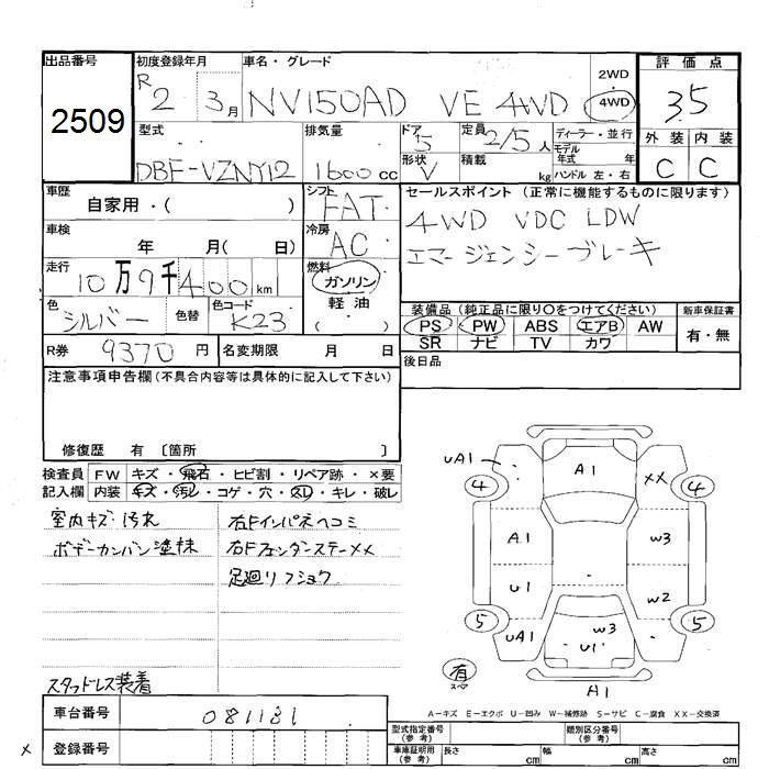 NISSAN NV150 AD 4WD VE - лот 2509