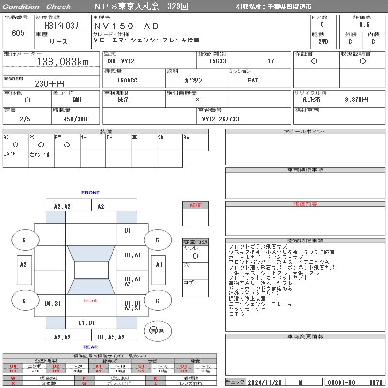 Все аукционы NISSAN NV150 AD