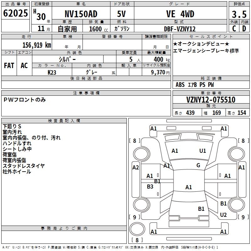 Все аукционы NISSAN NV150 AD