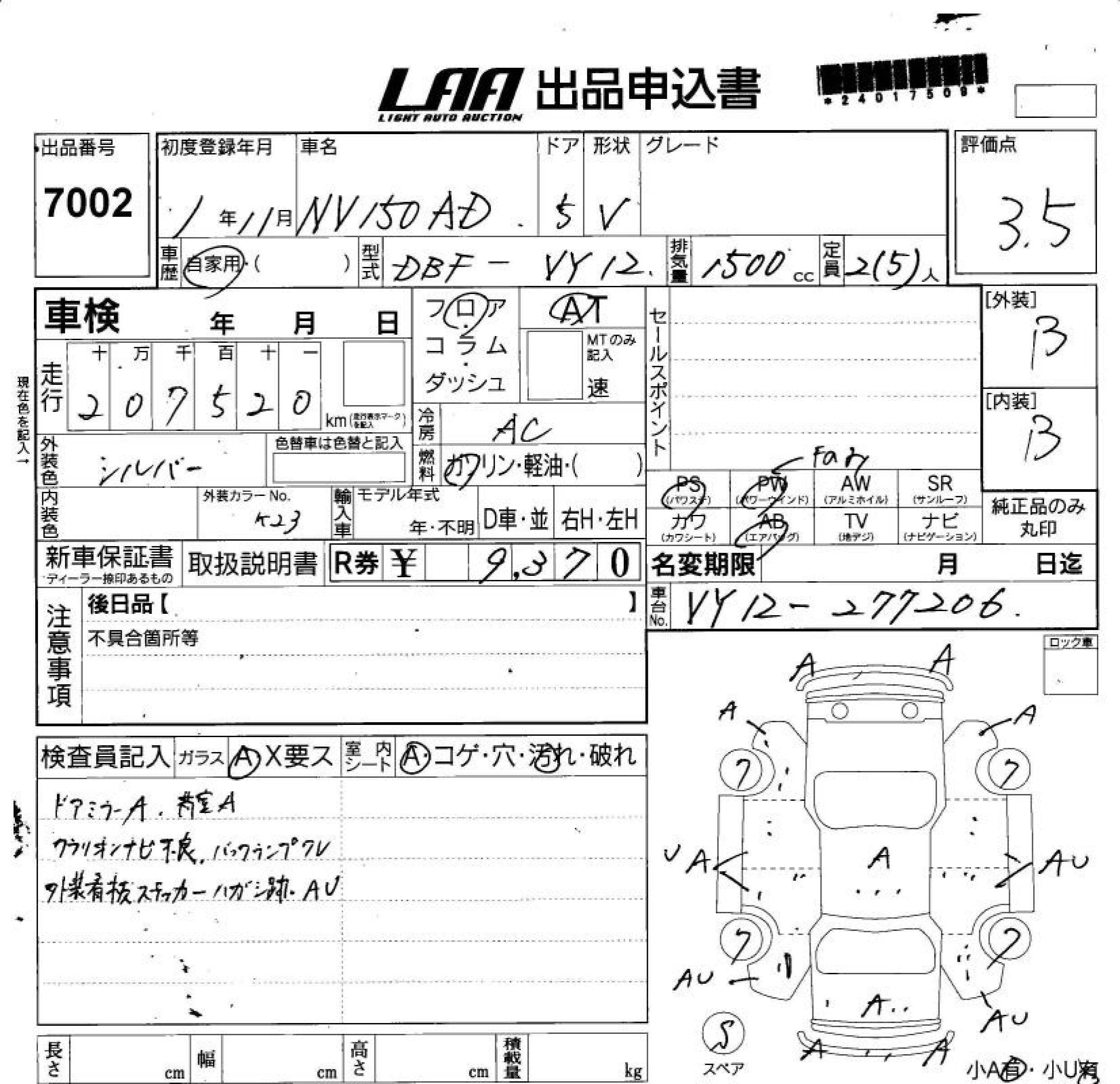 Все аукционы NISSAN NV150 AD