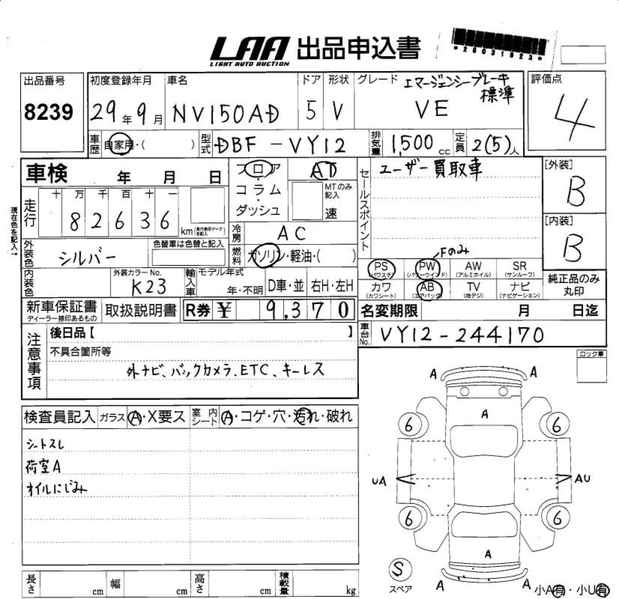 Все аукционы NISSAN NV150 AD