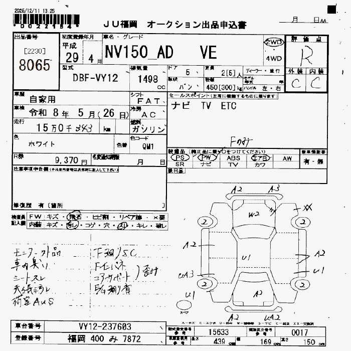Все аукционы NISSAN NV150 AD