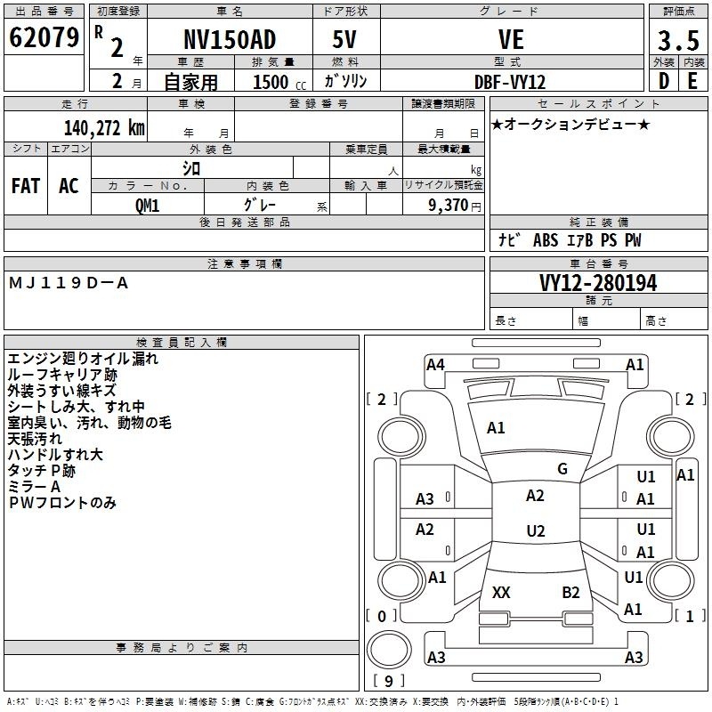 Все аукционы NISSAN NV150 AD