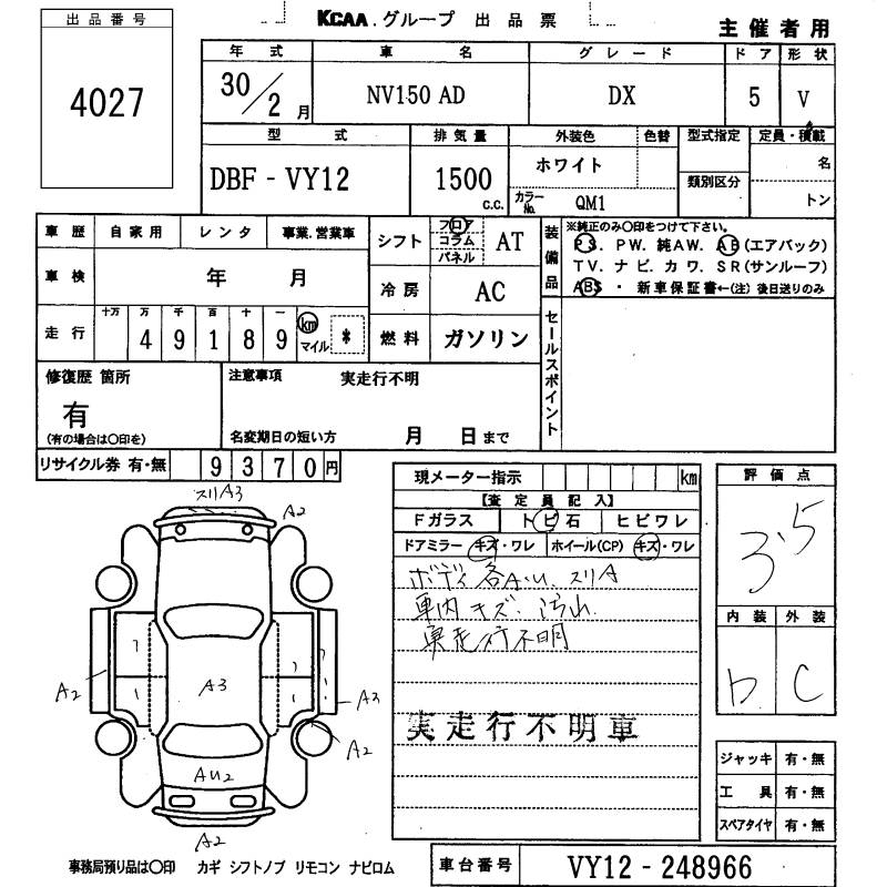 Все аукционы NISSAN NV150 AD