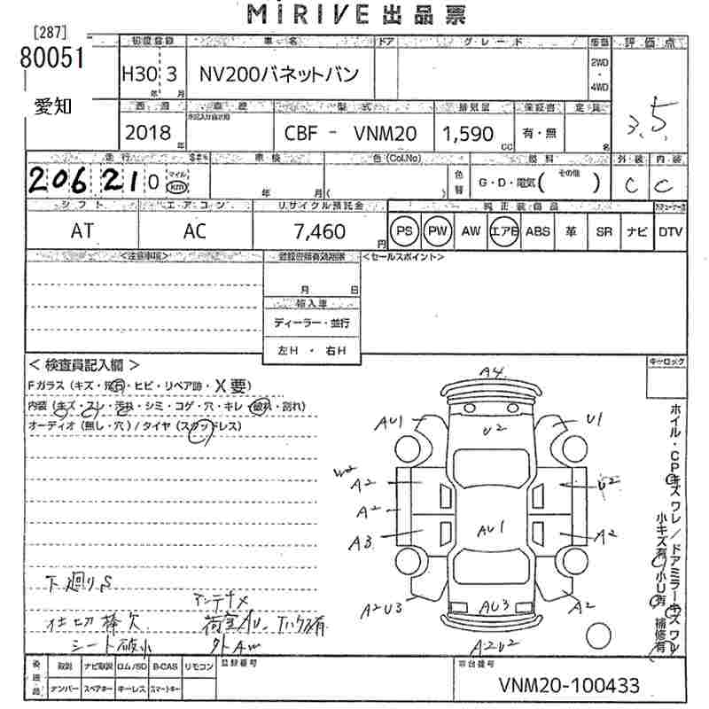 Все аукционы NISSAN NV200 VANETTE VAN