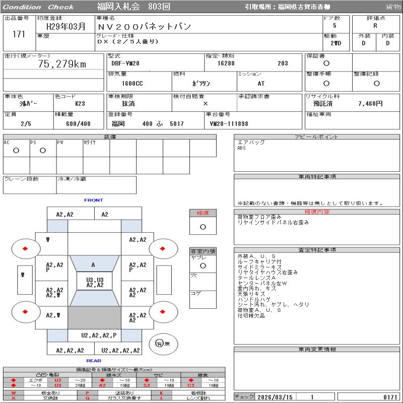 NISSAN NV200 VANETTE VAN - лот 171