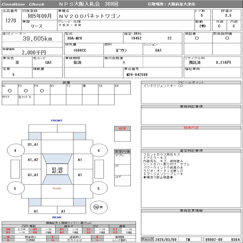 Все аукционы NISSAN NV200 VANETTE