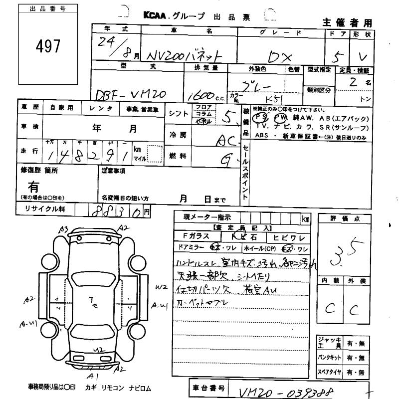 NISSAN NV200 VANETTE VAN - лот 497