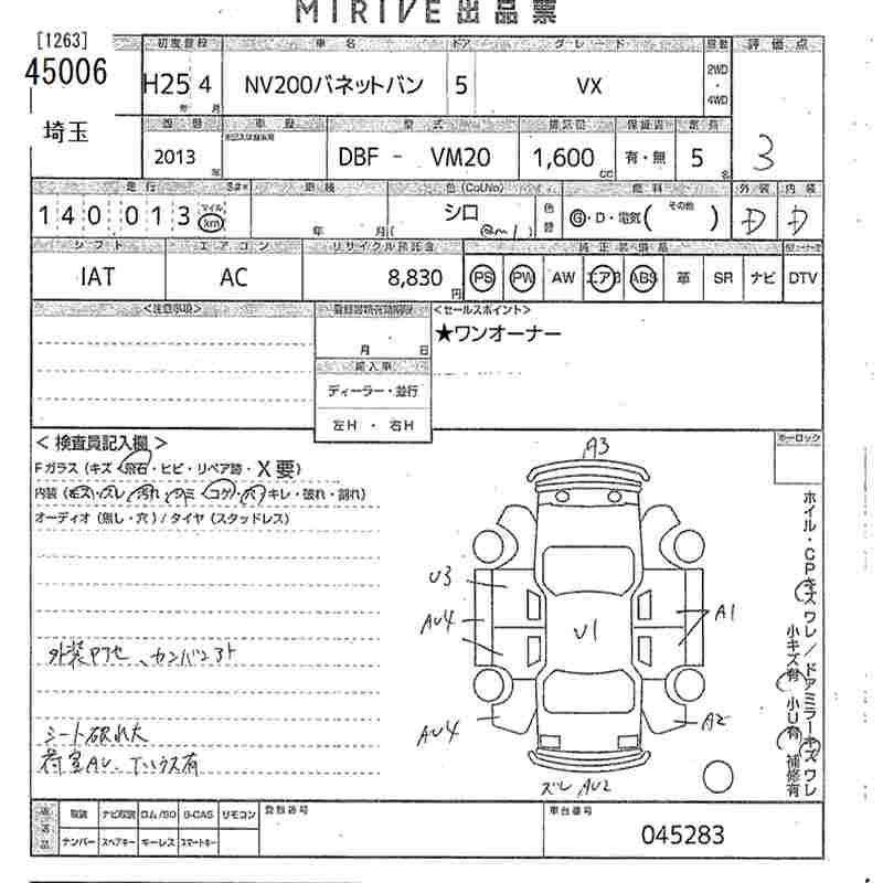 NISSAN NV200 VANETTE VAN - лот 45006