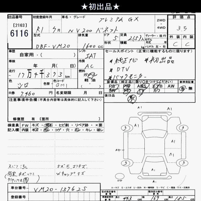 Все аукционы NISSAN NV200 VANETTE VAN