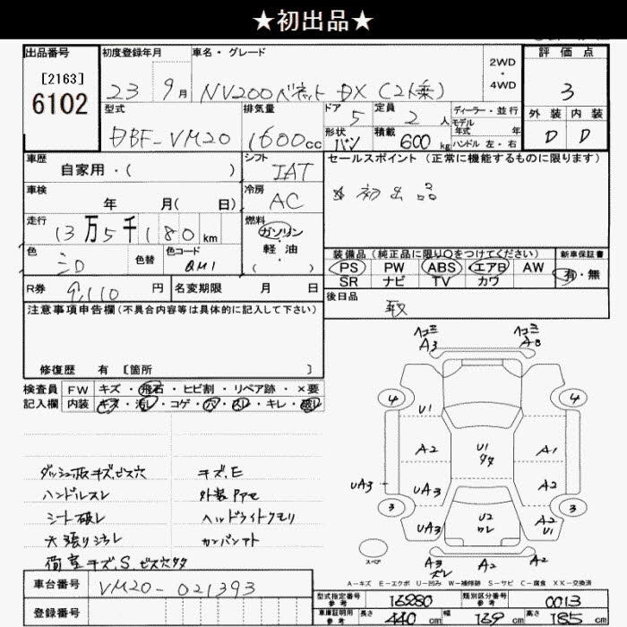 Все аукционы NISSAN NV200 VANETTE VAN