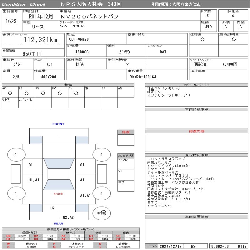 Все аукционы NISSAN NV200 VANETTE VAN