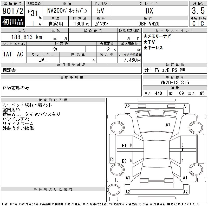 NISSAN NV200 VANETTE VAN - лот 90172
