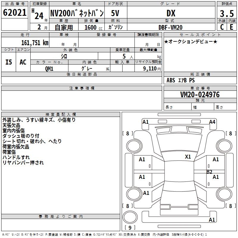 NISSAN NV200 VANETTE VAN DX - лот 62021