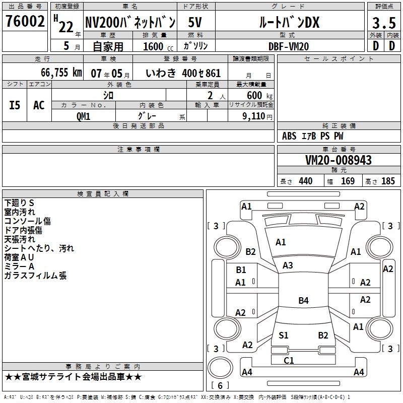 NISSAN NV200 VANETTE VAN ROOTVAN DX - лот 76002