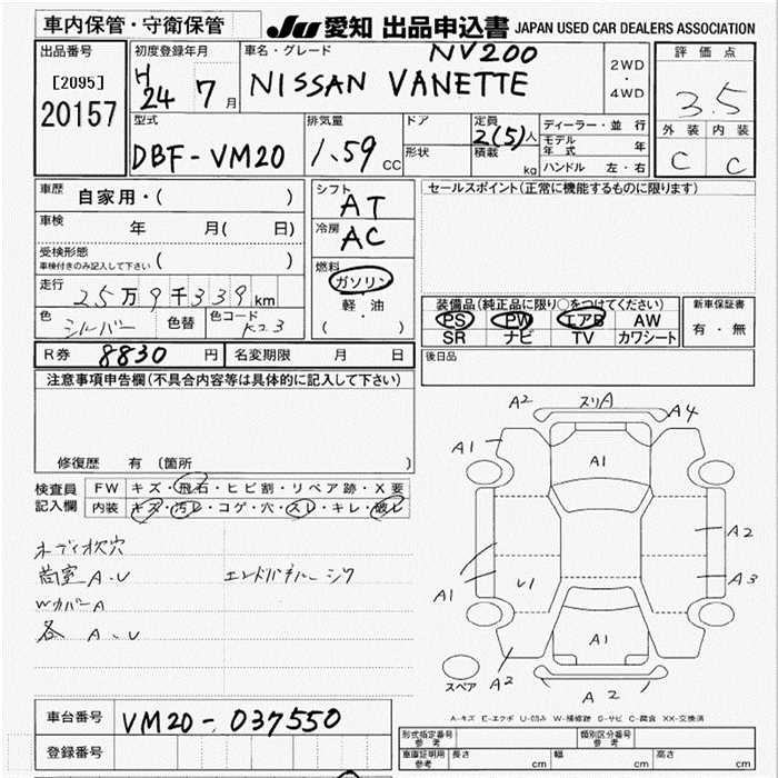 Все аукционы NISSAN NV200 VANETTE VAN
