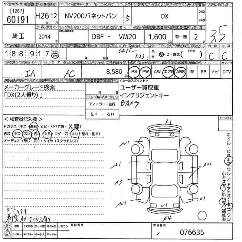 NISSAN NV200 VANETTE VAN DX - лот 60191