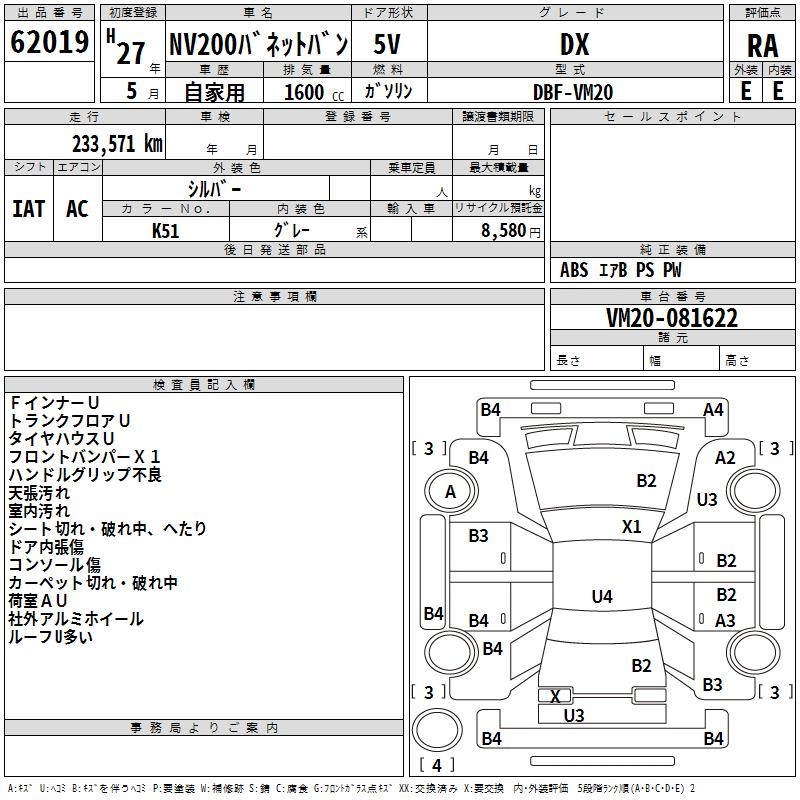 NISSAN NV200 VANETTE VAN DX - лот 62019