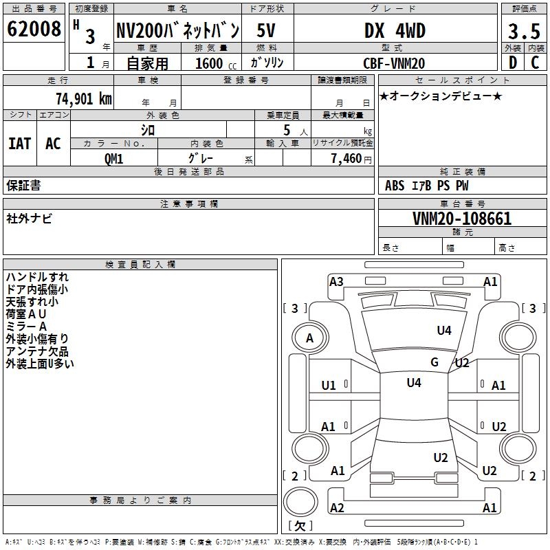 NISSAN NV200 VANETTE VAN DX 4WD - лот 62008
