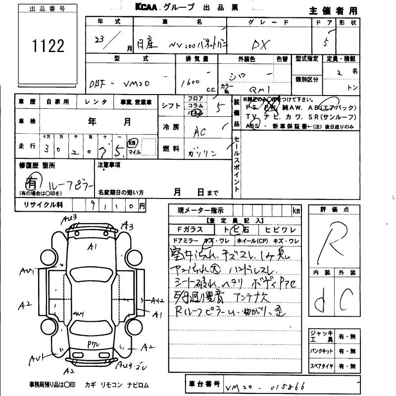 NISSAN NV200 VANETTE VAN DX - лот 1122